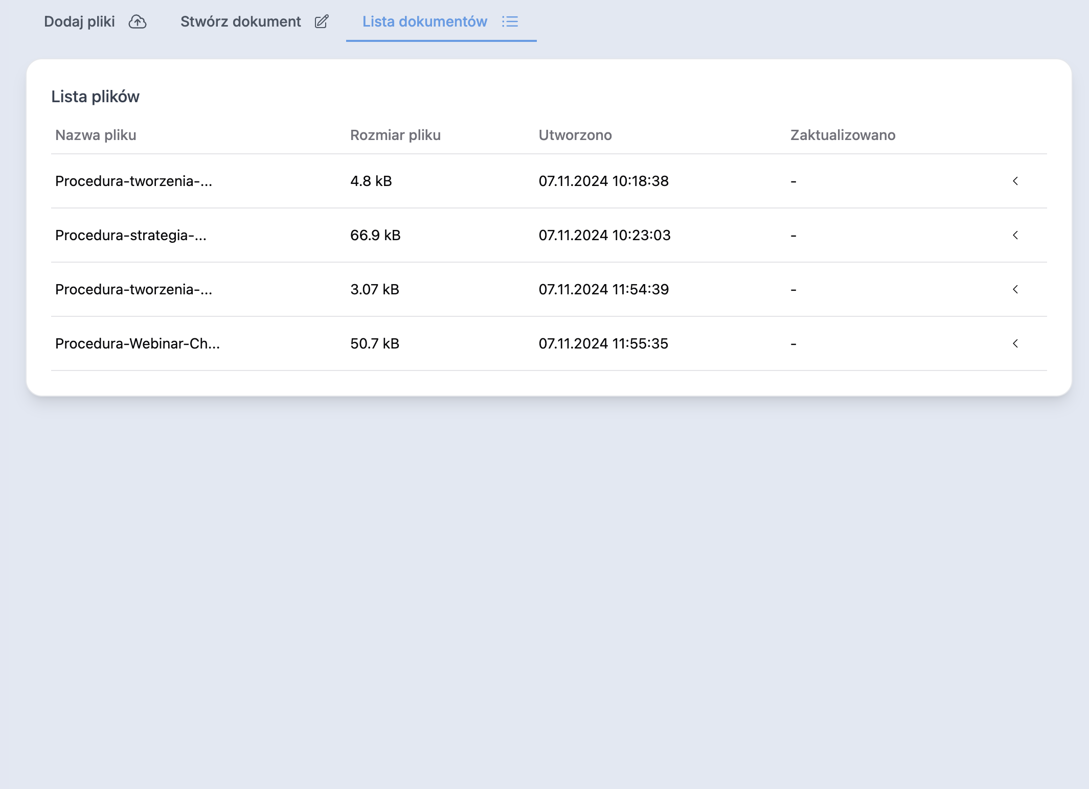 Asystent odczyta treść z plików PDF, prezentacji, checklist czy procesów i zapisze w odpowiednim formacie dla sztucznej inteligencji. Dzięki temu w łatwy sposób znajdziesz informacje, których aktualnie potrzebujesz. W dowolnym momencie możesz też edytować treść dokumentów.